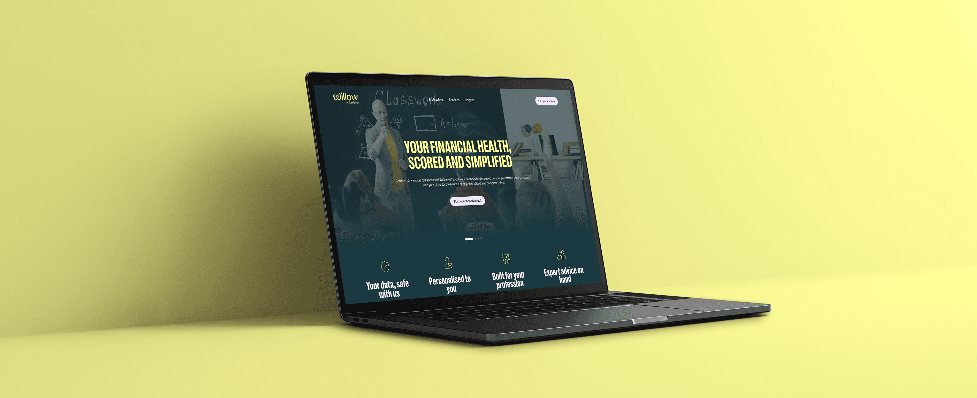 Wesleyan, a specialist financial services mutual with over 180 years of history, needed to prove that their brand could feel modern without losing trust. The brief arrived at an inflection point: a live rebrand underway, a new audience to reach, and a genuine product to ship, not a concept, not a pilot, but a fully functional financial health check tool and supporting microsite, live in six weeks. Willow was the vehicle for that ambition: a guided, conversational tool designed to help professionals, teachers, doctors, dentists, and lawyers understand their financial wellbeing and take a meaningful next step. The strategic opportunity was clear: design something that felt as considered as their new brand, demonstrated the value of personalised financial guidance, and laid the groundwork for a scalable design system the whole organisation could build on.
